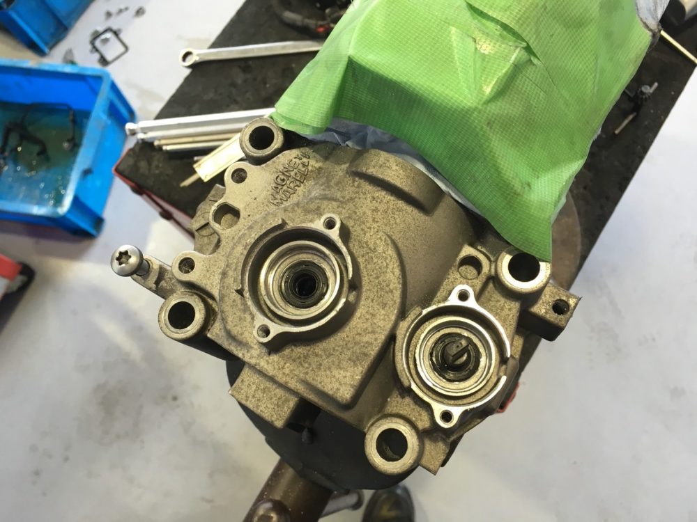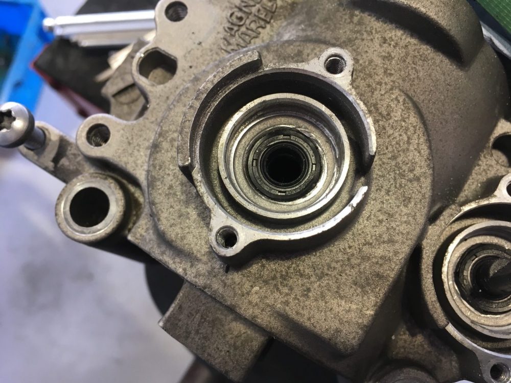 シャフトまわりにオイルが漏れているではないですかぁ!!(茶色くなっているところ)